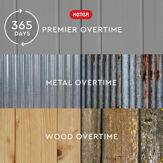 Premier Tall Resin Outdoor Storage Shed - 4.6 x 5.6 ft, Includes Shelving Brackets, Ideal for Patio Furniture, Pool Accessories, and Bikes, Grey & Black