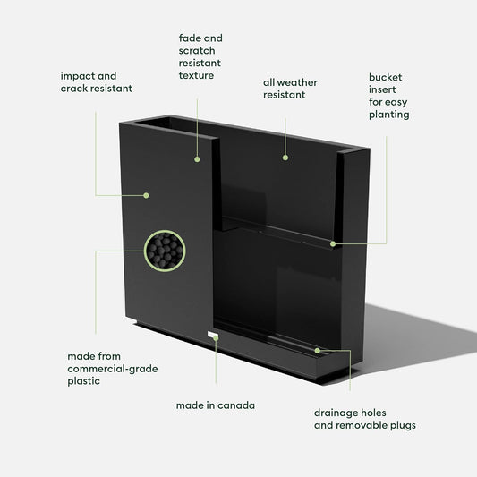 Tall Rectangular Block Span Plastic Planter - Ideal for Outdoor Patio/Porch | Durable, All-Weather Design with Removable Insert Bucket | Modern Look for Plants, Flowers, Garden Décor