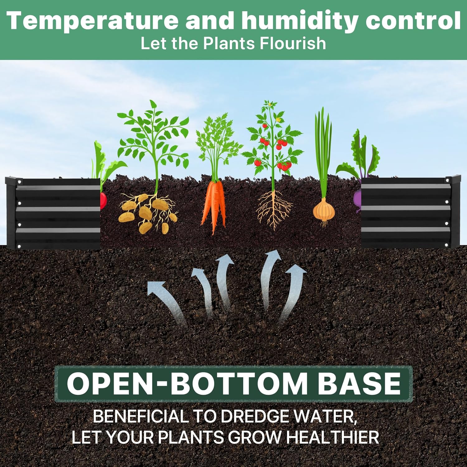 | Long-Lasting Durability: Made from thick, galvanized metal, these raised garden beds are built for extended use and won't contaminate soil. Resistant to rust, they ensure your garden thrives for years. Easy Installation: Setting up your garden bed is a delightful and creative task that can transform your yard into an oasis. The provided hexagonal wrench and detailed instructions make assembly a breeze, adding charm to your outdoor space. Protective Plastic Film: This durable film protects galvanized metal sheets from scratches and scuffs during transportation, keeping your garden bed looking pristine. Double the Growing Space: With their user-friendly design, even those with limited DIY skills can set up these planting beds effortlessly. Investing in these two beds enhances your gardening experience with convenience and durability. Value for Money: Whether growing fresh vegetables, caring for colorful plants, or harvesting tasty fruits, the Galvanized Raised Garden Bed offers the ideal space to realize your botanical dreams. Unleash your creativity and enjoy the joy of gardening. |