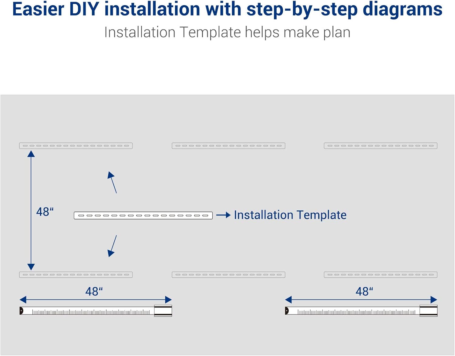| Limited Lifetime Protection: Avoid water damage by storing items off the garage floor. Utilize ceiling space for seasonal and unused items. The 22" to 40" adjustable dropdown provides up to 105 cu.ft. of storage. Dimensions: 96" L x 48" W x 22"-40" H. (Hooks sold separately) Strong and Secure: These overhead storage racks come with long ceiling brackets designed to attach to 2 studs. Combined with 6 vertical posts, this structure ensures optimal safety. High Quality: Features thicker M8 screws and thoroughly tested hardware. Made from heavy-duty cold-rolled steel, safely supports up to 600 lbs. Integrated Grid Design: More stable and sturdy compared to other designs with separate frame and wire. DIY Installation: Includes an installation template for easy planning. Fits all ceiling joist spacing ≤24"; if >24", fits only ceiling spacing of 48". Note: Cannot be mounted to metal walls. Suitable for wood studs/joists and concrete walls. |